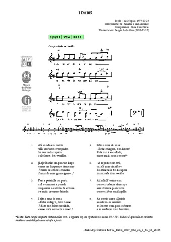 | Áreas de coñecemento: | LITERATURA E DITOS POPULARES > Cantos narrativos |