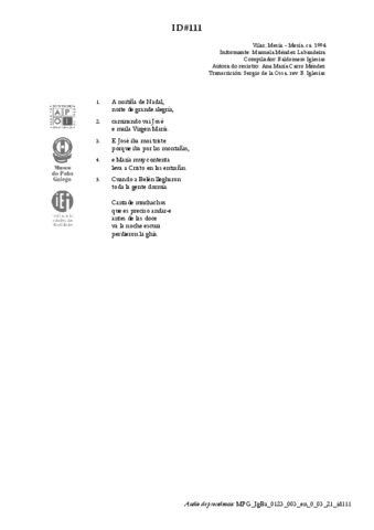 | Áreas de coñecemento: | FESTAS > Festas universais do ciclo anual > Nadal LITERATURA E DITOS POPULARES > Cantos narrativos |