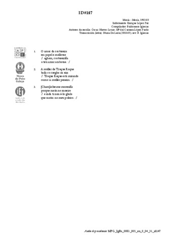 Autor da recolla: Óscar e Louro, Neves e López Pardo, María del Carmen