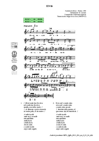 | Íncipit textual: | Esta noite hei d 'ir aló | A miña burriña |