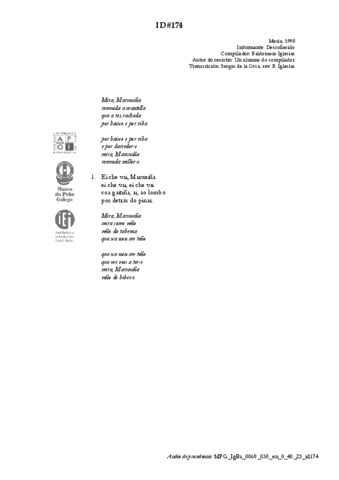 | Íncipit textual: | Aí che vai, Maruxiña | Mira, Maruxiña |