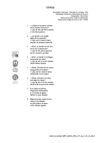 | Informantes: | - Río Galán, María "de Ferreiro" |