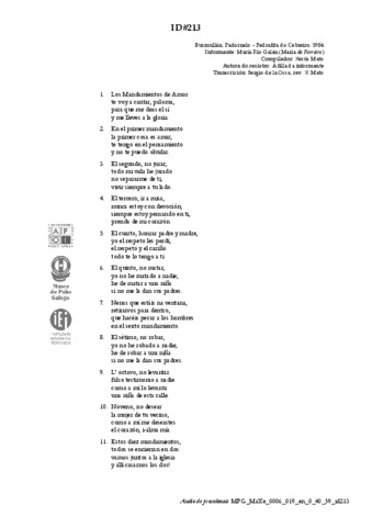 | Íncipit textual: | Los Mandamientos de Amor | |