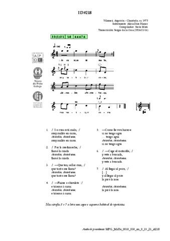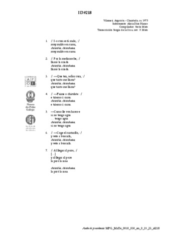 Lugar de compilación: Chantada - Argozón - Vilameá