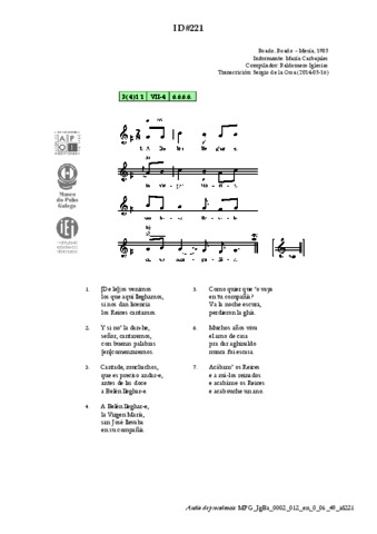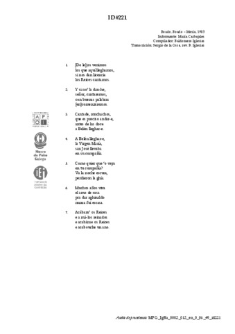 | Áreas de coñecemento: | FESTAS > Festas universais do ciclo anual > Nadal LITERATURA E DITOS POPULARES > Cantos narrativos |