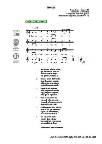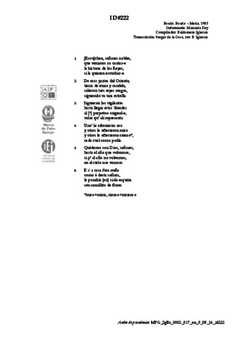 | Áreas de coñecemento: | FESTAS > Festas universais do ciclo anual > Nadal LITERATURA E DITOS POPULARES > Cantos narrativos |