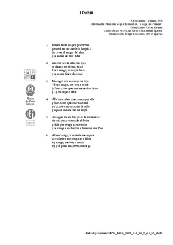 | Lugar de compilación: | Baleira - Fontaneira, A |