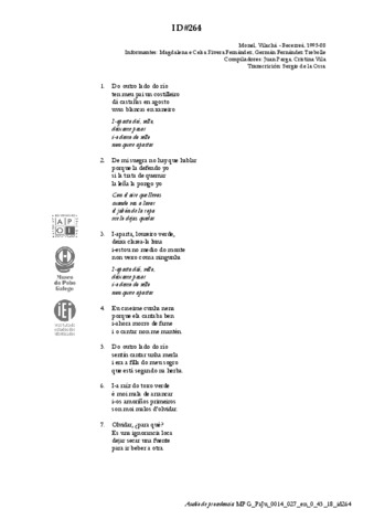 | Íncipit textual: | Do outro lado do río | Aparta daí, vello |