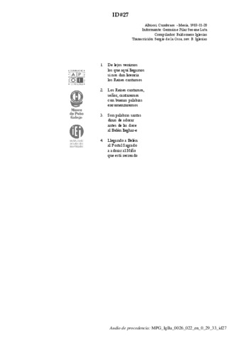 | Áreas de coñecemento: | FESTAS > Festas universais do ciclo anual > Nadal LITERATURA E DITOS POPULARES > Cantos narrativos |