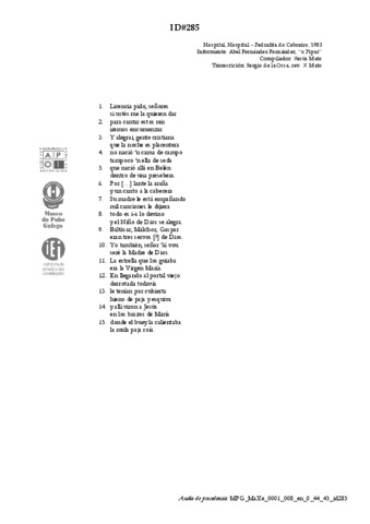 | Áreas de coñecemento: | FESTAS > Festas universais do ciclo anual > Nadal LITERATURA E DITOS POPULARES > Cantos narrativos |