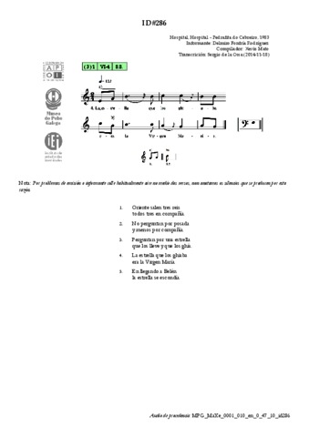 | Áreas de coñecemento: | FESTAS > Festas universais do ciclo anual > Nadal LITERATURA E DITOS POPULARES > Cantos narrativos |