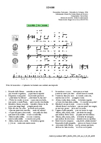 | Áreas de coñecemento: | LITERATURA E DITOS POPULARES > Cantos narrativos |