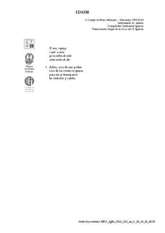 Íncipit textual: Adiós, casa de mis padres E vira, rapaza