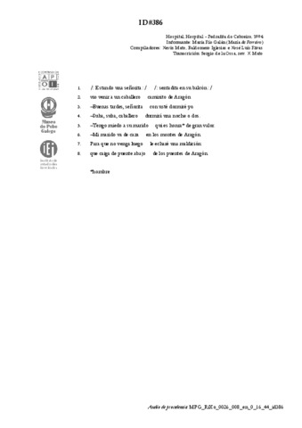 | Informantes: | - Río Galán, María "de Ferreiro" |