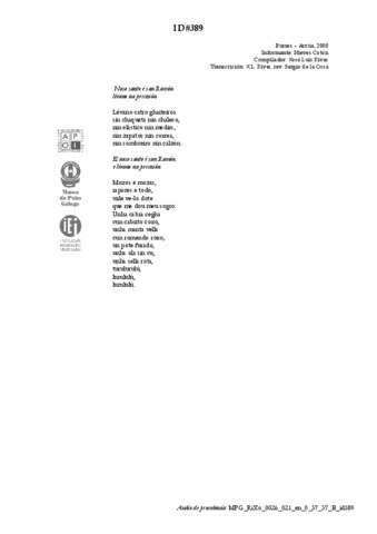 Lugar de compilación: Arzúa - Burres