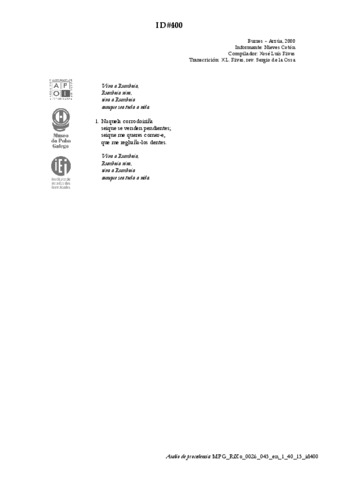 | Datos musicais | Refrán | |