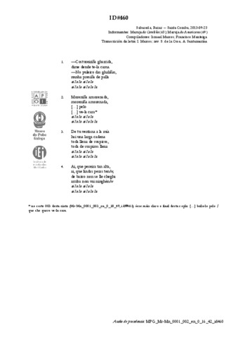 | Datos musicais | Refrán | |