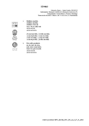 | Lugar de compilación: | Santa Comba - Bazar - Sabaceda |