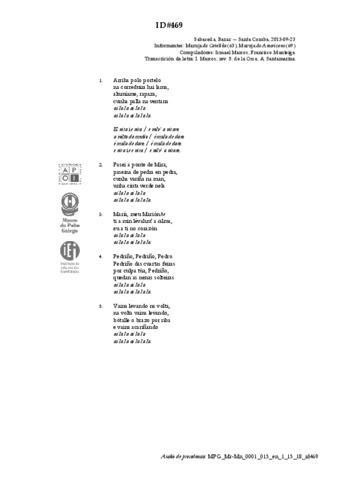 | Lugar de compilación: | Santa Comba - Bazar - Sabaceda |