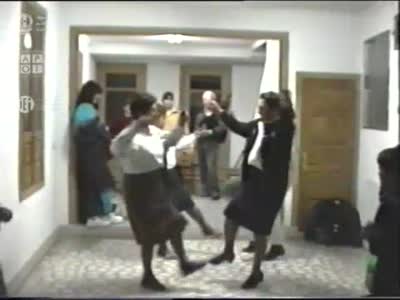 Bailan: Florinda Vázquez Gerúndez (con chaqueta); Carmen López Álvarez (con camisa branca, or. de Camporredondo); Maruja Vilares Quiroga (con chaleco); Cristina Vila Méndez (compiladora; con pantalóns e chaqueta gris).