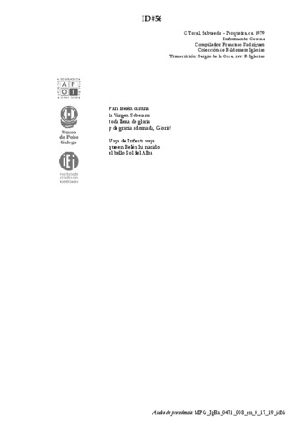 Lugar de compilación: Porqueira - Sabucedo - Toxal, O
