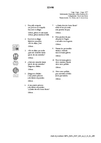 | Áreas de coñecemento: | FESTAS > Festas universais do ciclo anual > Nadal LITERATURA E DITOS POPULARES > Cantos narrativos |